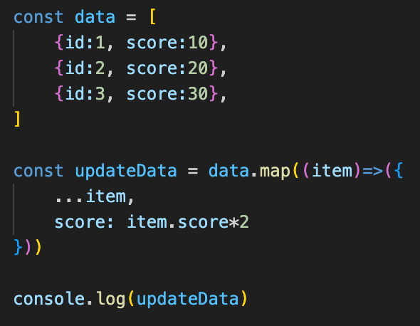 이렇게 ...(스프레드연산자)를 이용해 기존 객체를 수정하지않고 새로운 객체 2배수로 반환한다.