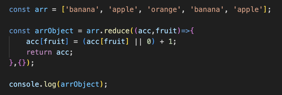 acc[fruit]가 이미 있으면 그 값을 사용, 값이 없으면 || 뒤에 값인 0을 사용!