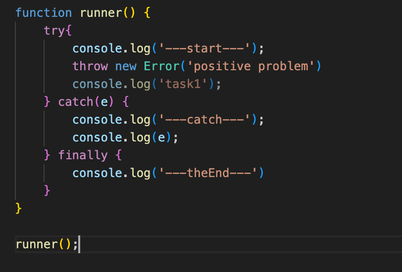 try문 안에서 throw로 에러를 던지고 던져진 에러를