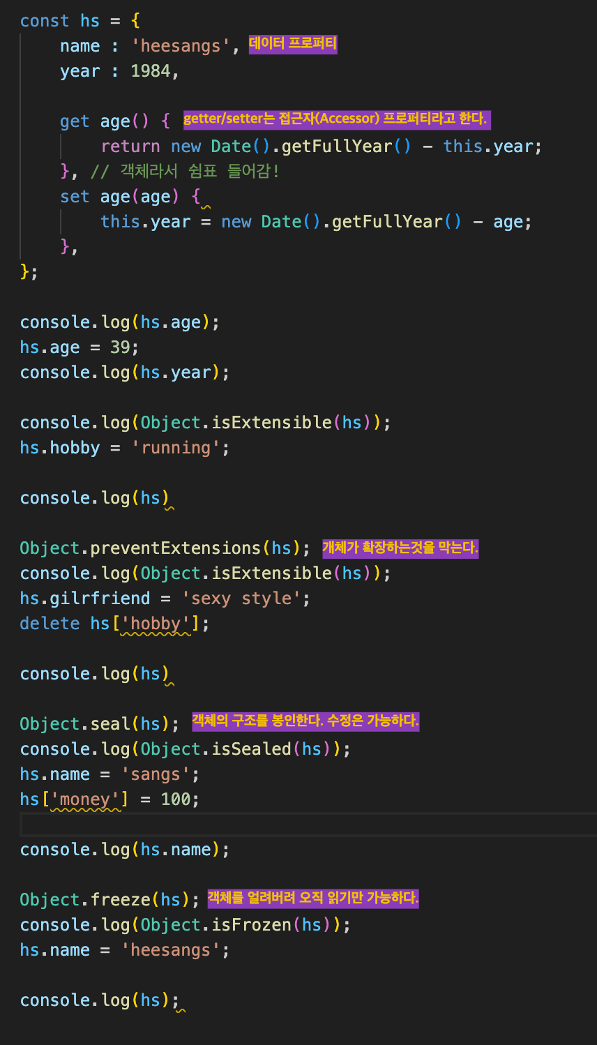 2) seal : 객체의 구조가 봉인된다. (수정만 가능)