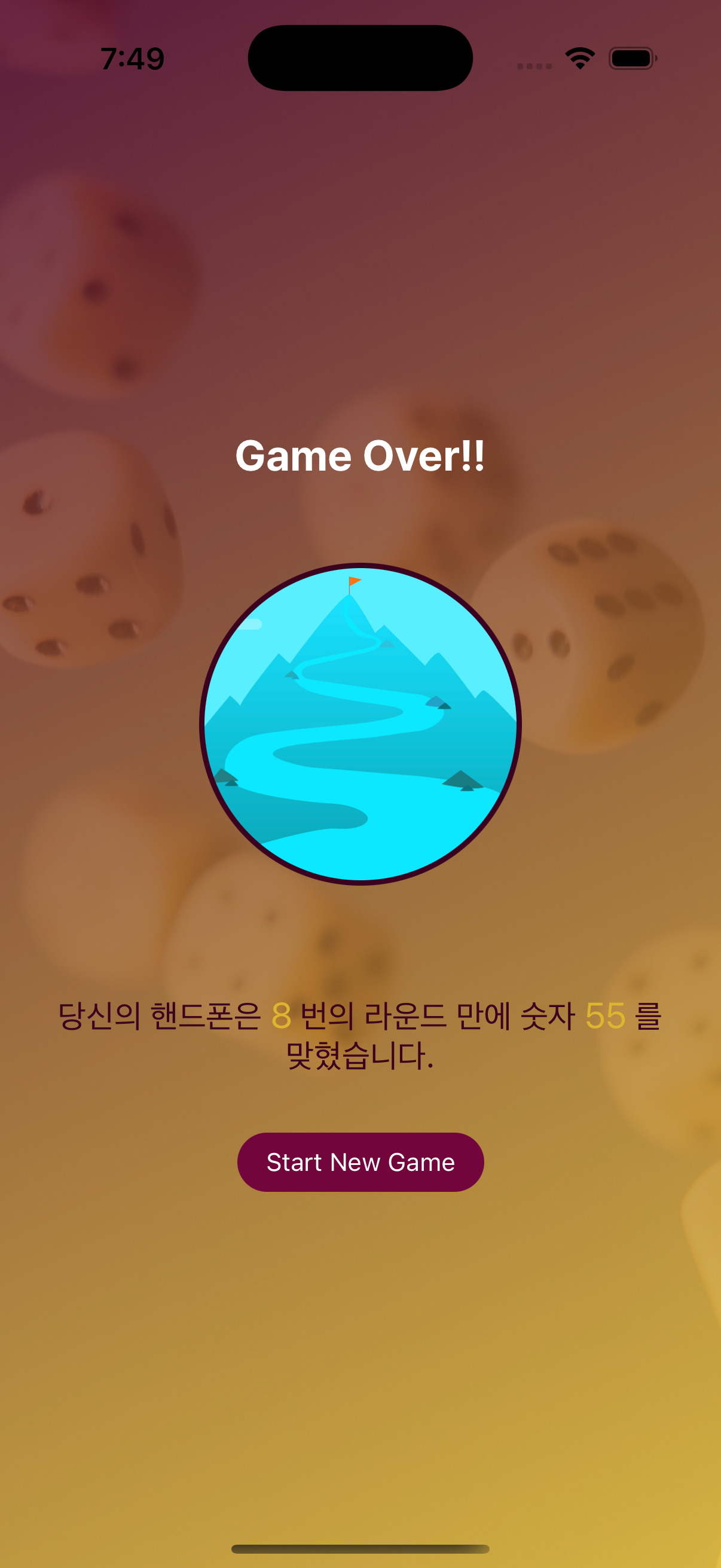 몇번만에 앱이 정답에 도출되었는지도 최종 화면에서 확인가능하다.